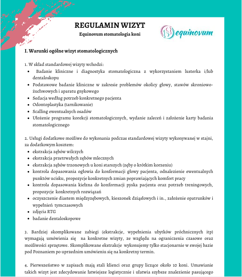 Przed umówieniem spotkania prosimy o przeczytanie regulaminu – znajdziesz tam informacje, jak przygotować konia i stajnię, a także odpowiedzi na najczęściej zadawane pytania.
